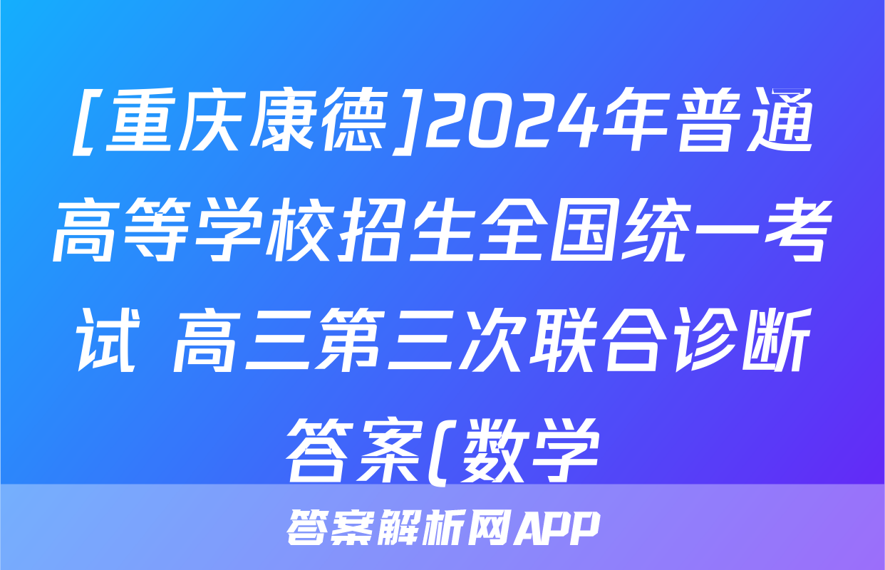 [重庆康德]2024年普通高等学校招生全国统一考试 高三第三次联合诊断答案(数学)正在持续更新,目前2024届衡中同卷答案网为大家整理了相关试题及答案,供大家查缺补漏,高效提升成绩。