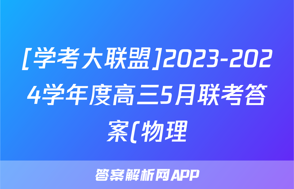 [学考大联盟]2023-2024学年度高三5月联考答案(物理)正在持续更新,目前2024届衡中同卷答案网为大家整理了相关试题及答案,供大家查缺补漏,高效提升成绩。
