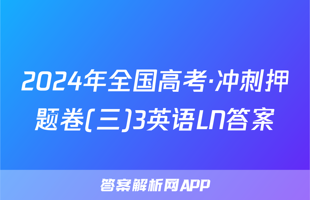 高三2024年全国高考·冲刺押题卷(三)3英语LN试题 <p>1、高三2024年全国高考·冲刺押题卷(二)2英语LN试题</p><br><p><p>1、高三2024年全国高考·冲刺押题卷(一)1英语LN试题</p><br><p><p>1、高三2024年全国高考·冲... 2024-03-26 05:09:37 36 #冲刺押题卷答案 #冲刺押题答案 #全国高考·冲刺押题卷答案