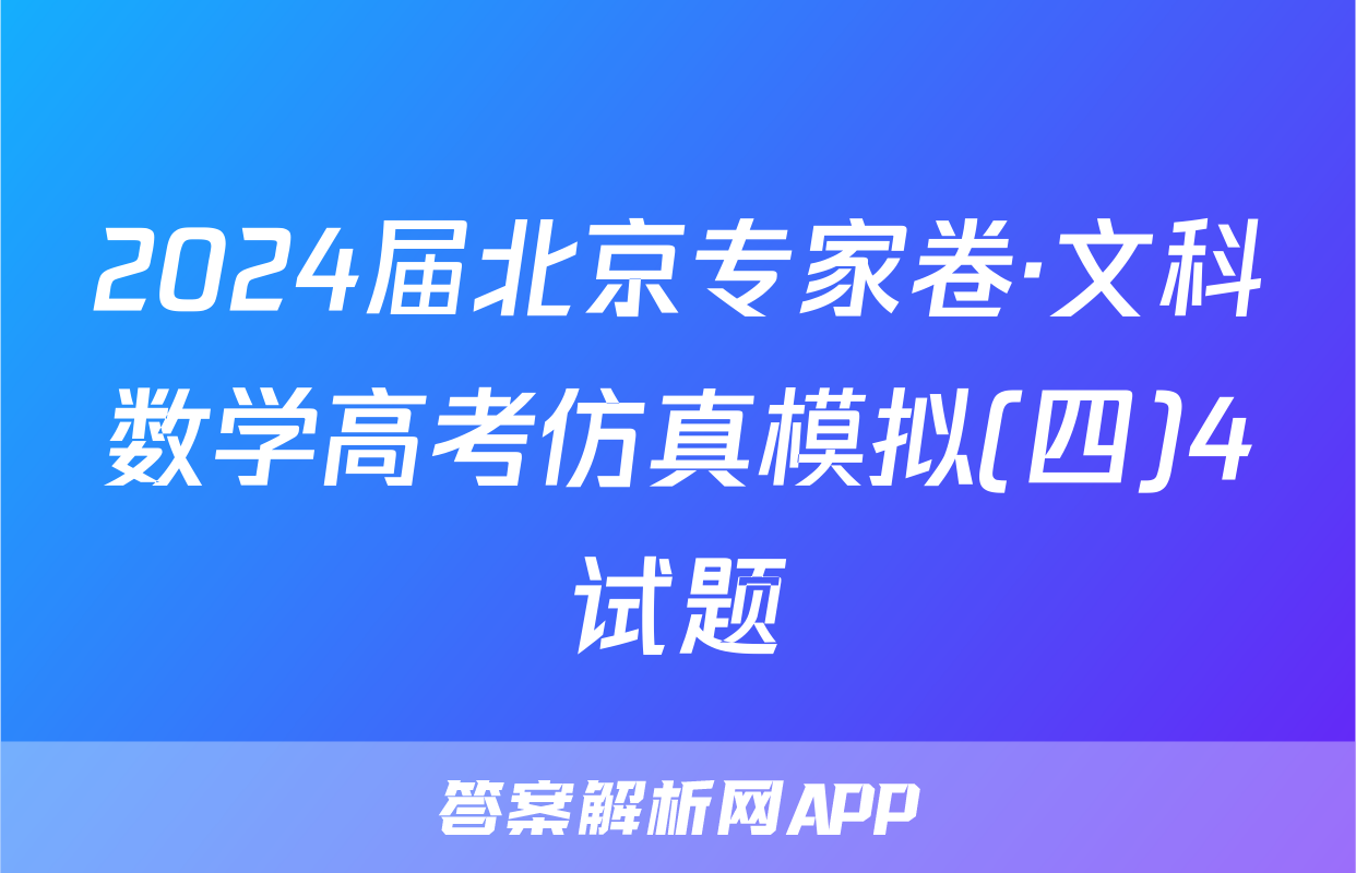 2024届北京专家卷·文科数学高考仿真模拟(四)4试题 <p>1、2024届北京专家卷·文科数学高考仿真模拟(一)1试题</p><br><p><p>1、2024届北京专家卷·文科数学高考仿真模拟(一)1答案</p><br><p><p>1、高三2024届冲刺02数... 2024-02-25 11:52:13 181 #XX届全国高考仿真模拟卷答案 #北京大教育 答案 #专家押题答案 #2021届全国高考仿真模拟卷答案 #仿真冲刺押题答案 #仿真冲刺答案