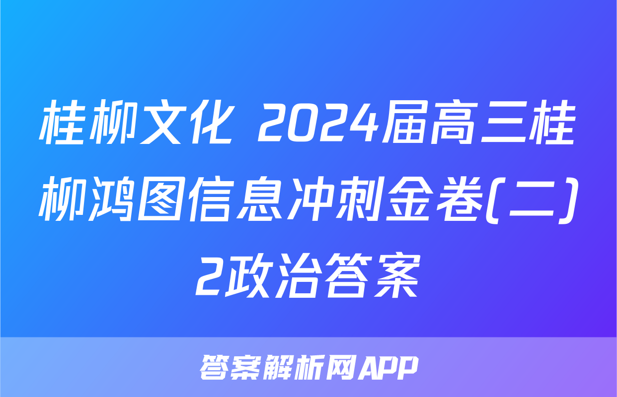 桂柳文化 2024届高三桂柳鸿图信息冲刺金卷(二)2政治答案 <p>1、[桂柳文化]2024届高三桂柳鸿图信息冲刺金卷(一)1数学答案</p><br><p><p>1、[桂柳文化]2024届高三桂柳鸿图信息冲刺金卷(一)1生物答案</p><br><p><p>1、桂柳... 2024-03-14 14:52:13 39 #桂柳答案 #鸿图答案 #桂柳鸿图答案 #冲刺答案 #冲刺金卷答案 #信息冲刺答案