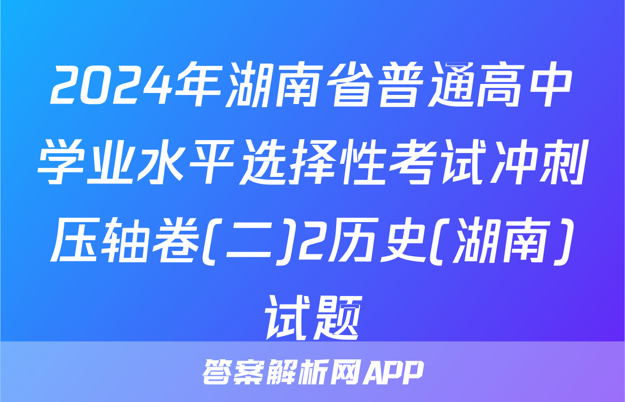 2024年湖南省普通高中学业水平选择性考试冲刺压轴卷(二)2历史(湖南)答案 <p>1、2024年湖南省普通高中学业水平选择性考试冲刺压轴卷(一)1历史(湖南)答案</p><br><p><p>1、2024年湖南省普通高中学业水平选择性考试冲刺压轴卷(一)1政治(湖... 2024-03-14 06:42:13 39 #湖南省答案 #冲刺答案 #冲刺压轴答案 #压轴卷答案