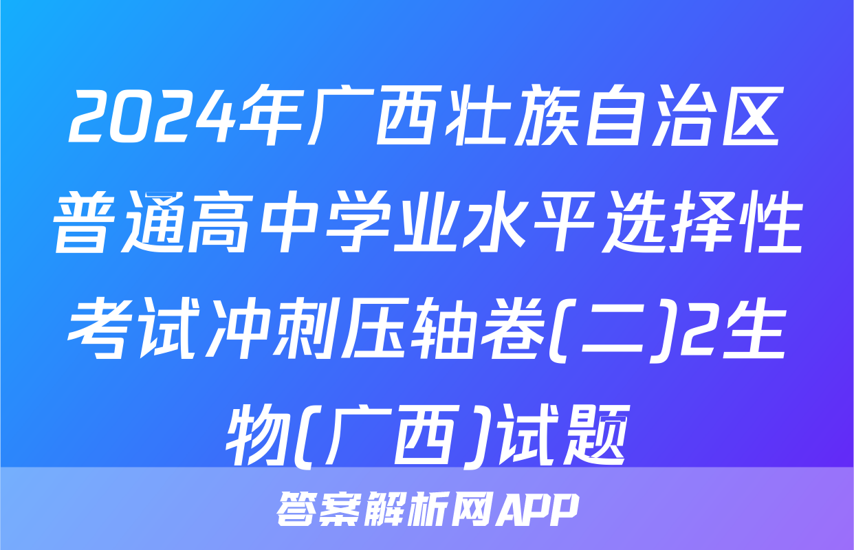 2024年广西壮族自治区普通高中学业水平选择性考试冲刺压轴卷(二)2生物(广西)试题 <p>1、2024年广西壮族自治区普通高中学业水平选择性考试冲刺压轴卷(一)1生物(广西)试题</p><br><p><p>1、2024年广西壮族自治区普通高中学业水平选择性考试冲刺压... 2024-03-13 04:02:23 41 #冲刺答案 #冲刺压轴答案 #压轴卷答案