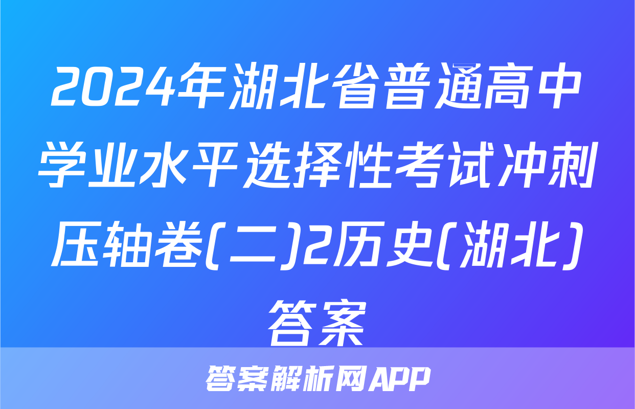 2024年湖北省普通高中学业水平选择性考试冲刺压轴卷(二)2历史(湖北)答案 <p>1、2024年湖北省普通高中学业水平选择性考试冲刺压轴卷(一)1历史(湖北)答案</p><br><p><p>1、2024年湖北省普通高中学业水平选择性考试冲刺压轴卷(一)1生物(湖... 2024-03-14 06:46:19 30 #冲刺答案 #冲刺压轴答案 #压轴卷答案