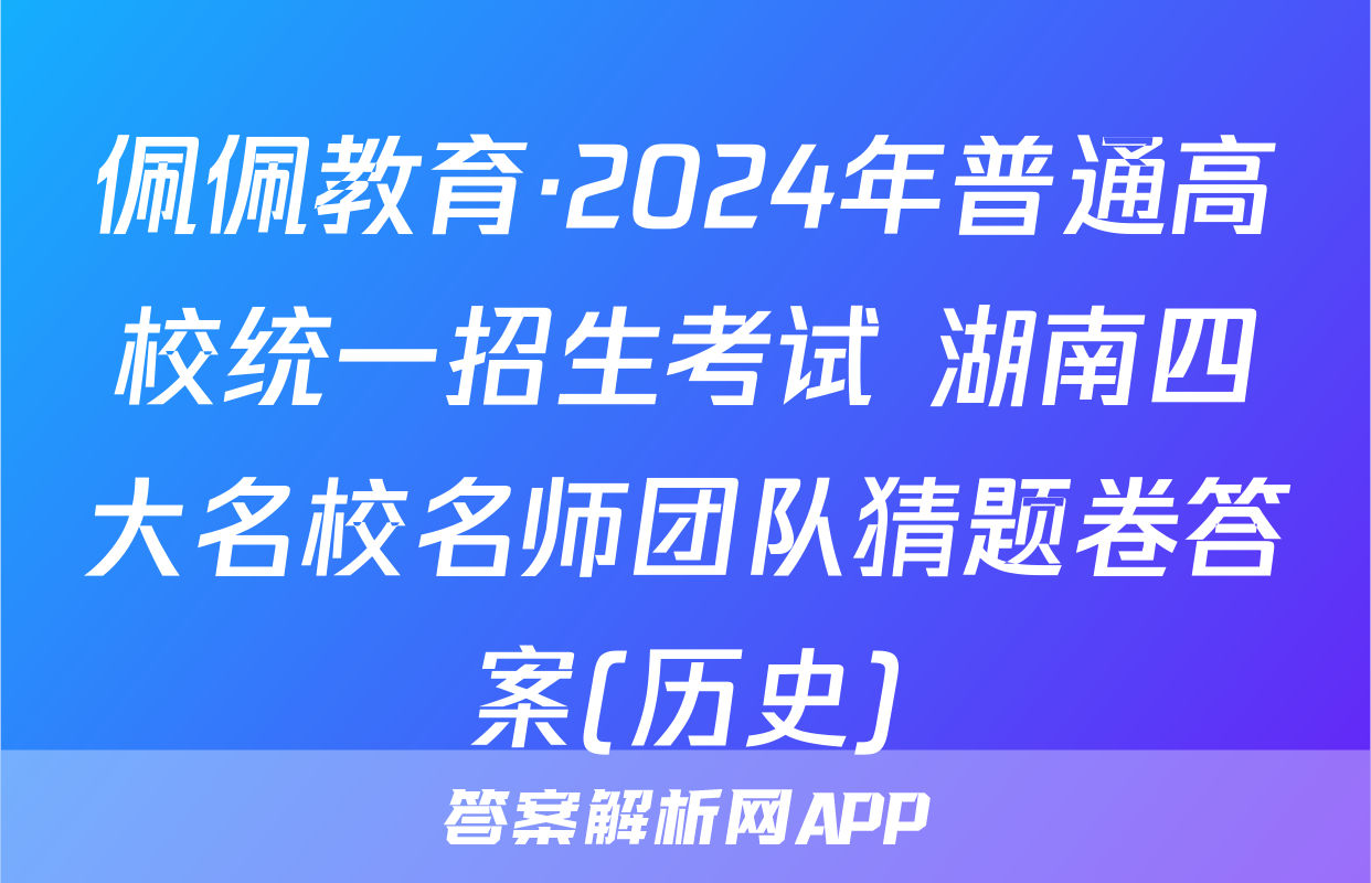 佩佩教育·2024年普通高校统一招生考试 湖南四大名校名师团队猜题卷答案(政治) <p>1、佩佩教育·2024年普通高校统一招生考试 湖南四大名校名师团队猜题卷答案(地理)</p><br><p><p>1、[佩佩教育]2024年普通高校统一招生考试 湖南四大名校名师团... 2024-05-12 20:42:25 31 #佩佩答案 #佩佩教育答案 #名校名师答案